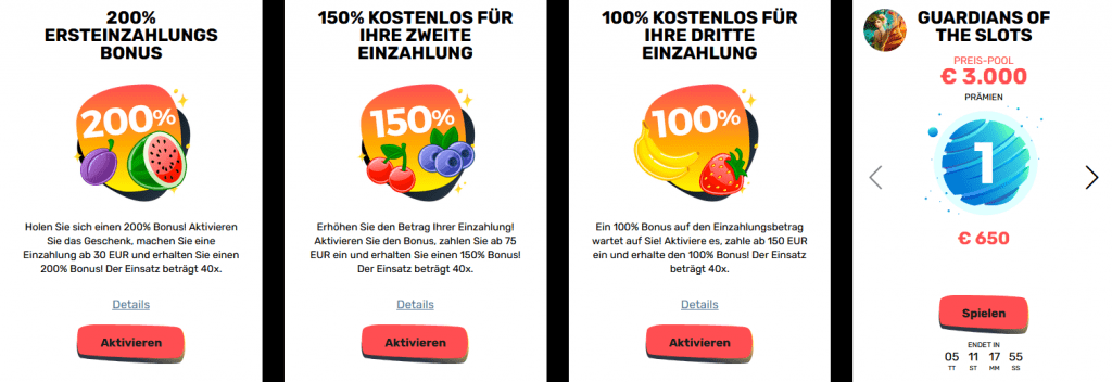 Moratel će biti oduševljen bonus sistemom SlottyWay Casino. Najbolje slot mašine imaju novčane bonuse i besplatne spinove. Pridošlice na sajtu mogu istovremeno dobiti više depozitnih nagrada za svoj prvi minimalni depozit CZK 100 na sajtu: